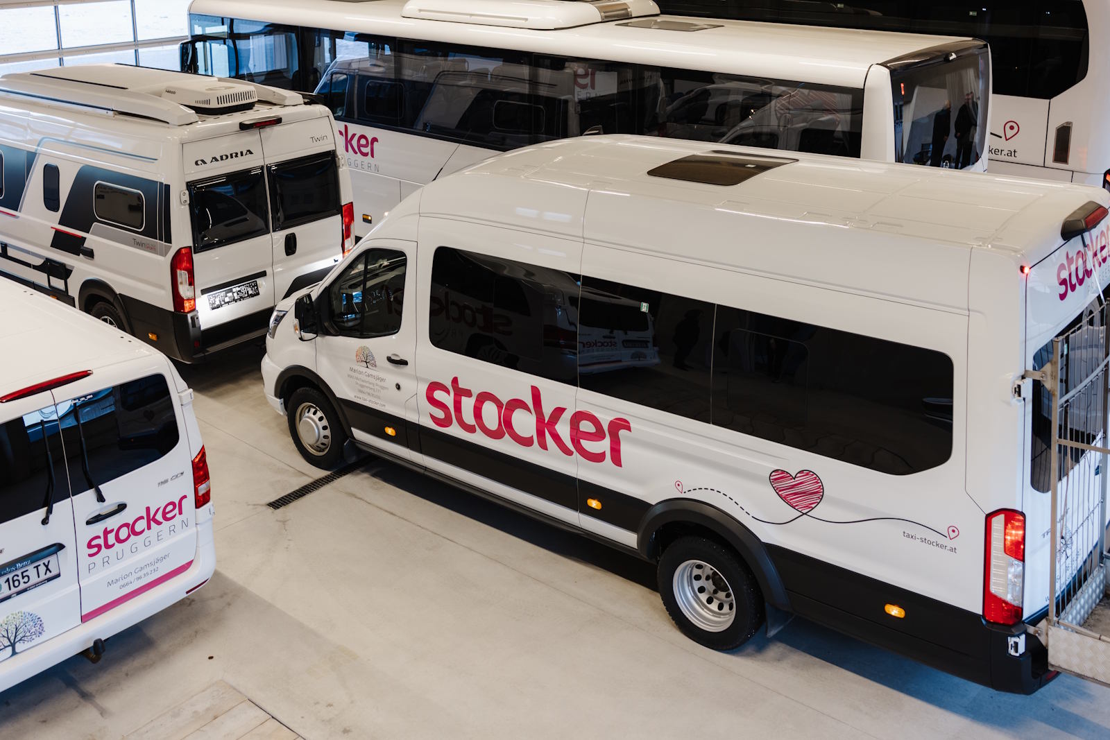 Die Busflotte von Stocker-Reisen ist vielseitig aufgestellt und ermöglicht individuelle Reisen für unterschiedlich große Gruppen: